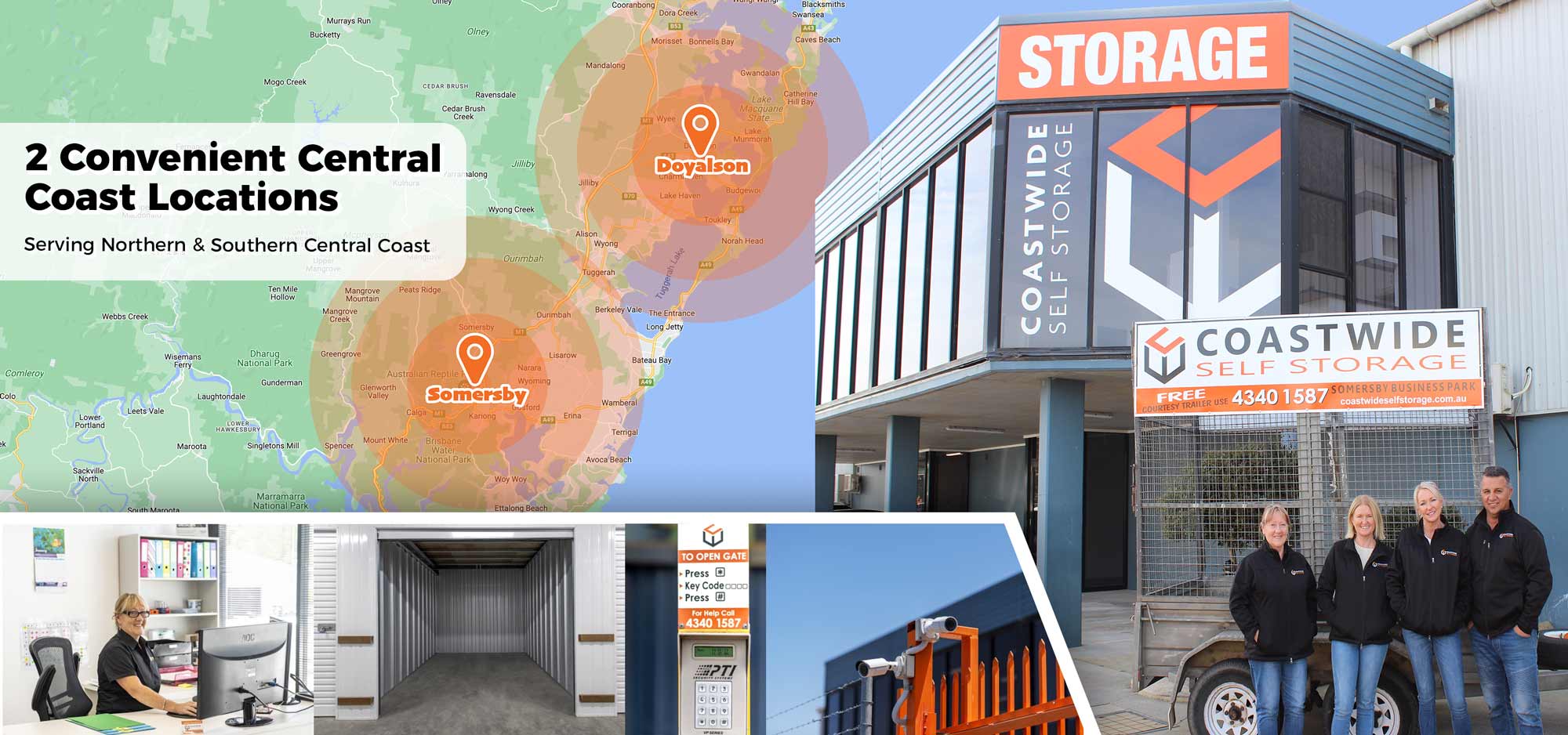 Our Somersby facility is only 500 metres from the M1 Pacific Motorway. We're a short 10 minute drive from Gosford, 15 minutes from Woy Woy and our excellent value storage units are only 30 minutes drive from Sydney's Northern suburbs.